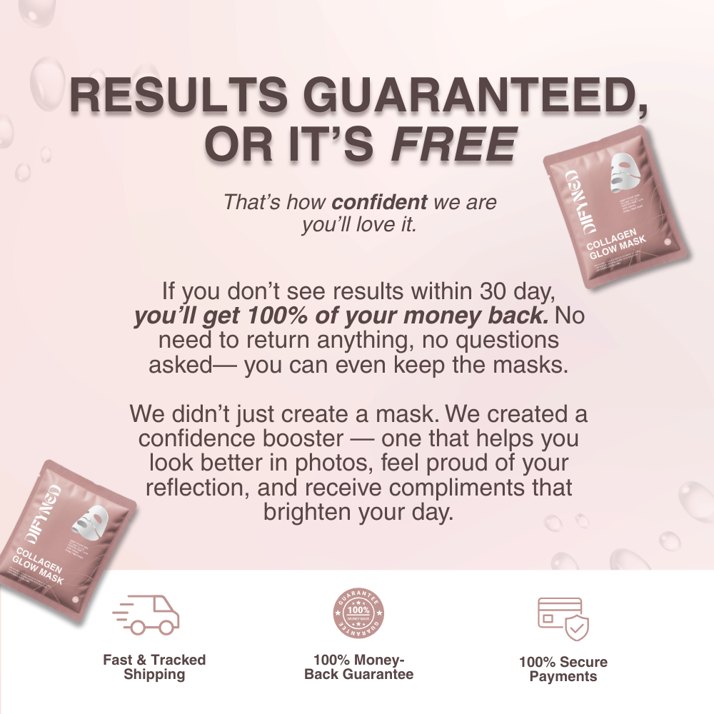 You’re fully covered by our 30-Day Results Guarantee. If you don’t see results within 30 days, you’ll get 100% of your money back — and you can keep the masks.