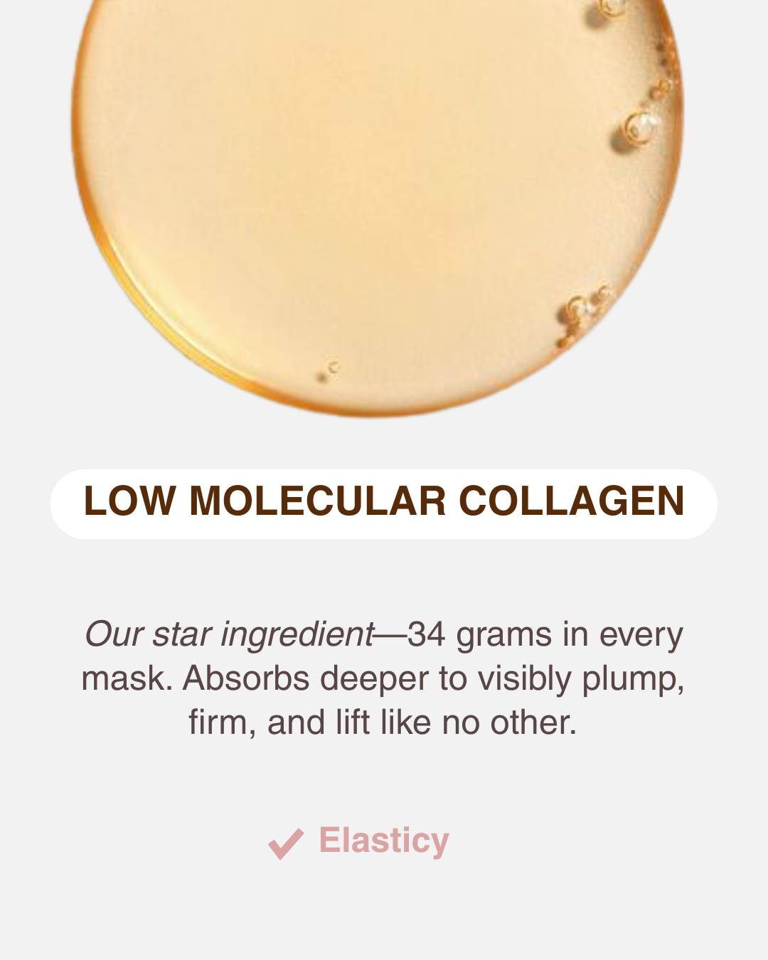 Experience instant hydration and a glass-like glow within 2 hours — with clinically proven collagen that locks in moisture, smooths fine lines, and refreshes your skin after just one mask.
